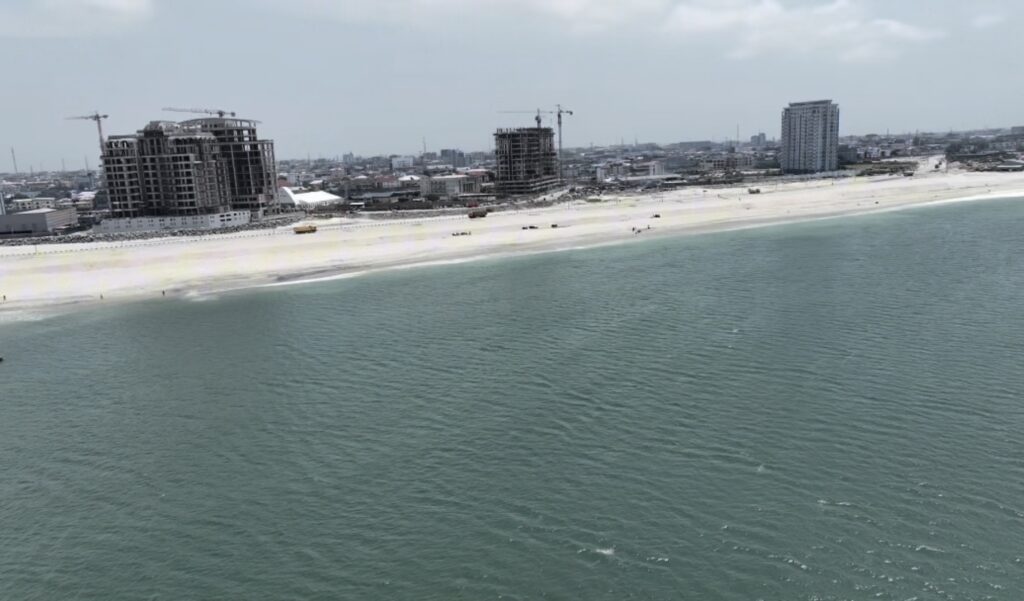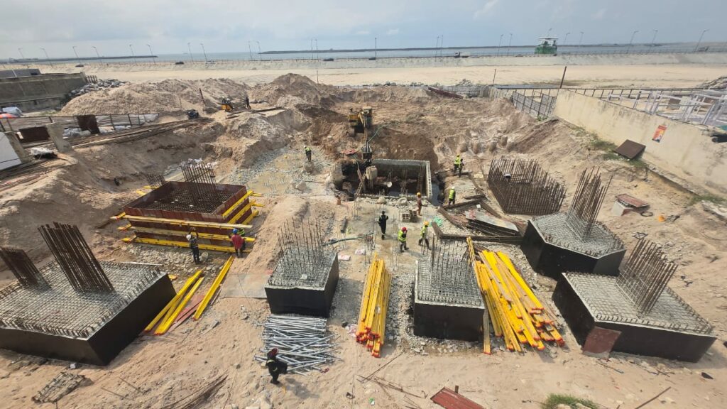 It’s July 2025, the Lagos Calabar road construction is completed pass Bluewater Okunde Tourism Zone, where we are, set back is defined by Federal as 90m, we are outside the set back, Eko Atlantic Resort & Beach is clearly visible as we overlook both the coastal road and the beach. We secure approval to continue to build and we begin pilling again.
